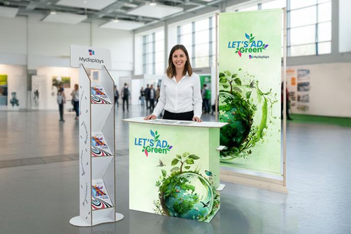 ✔ Kompaktes Komplettpaket: Bannerdisplay, Theke und Prospektständer in einem umweltfreundlichen Set.